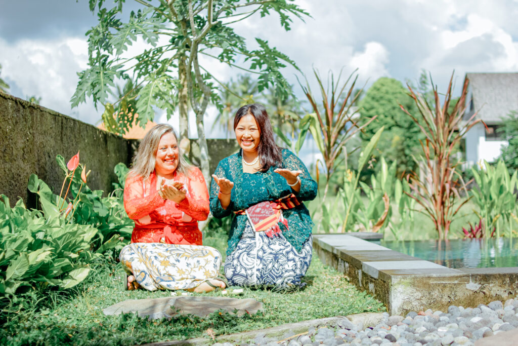 Eloïse et Wayan notre soeur balinaise d’ Ubud. Nous sommes tel une famille, et nous vous apportons des produits de qualité et artisanats de Bali grâce à Wayan.